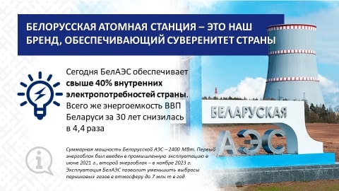 Суверенная Беларусь не только покорила космос, но и вошла в «Клуб стран мирного атома». Стратегическое решение о сооружении БелАЭС и формировании национальной ядерной инфраструктуры, принятое в 2008 году, стало принципиально важным для устойчивого долгосрочного развития страны и повышения национальной безопасности. Белорусская атомная станция – это наш бренд, обеспечивающий суверенитет страны.
