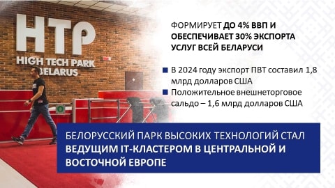 ПВТ стал успешной отраслью белорусской экономики, «созданной с нуля» в период независимости страны. Сегодня он формирует до 4% ВВП и обеспечивает 30% экспорта услуг всей Беларуси. В 2024 году экспорт ПВТ составил 1,8 млрд долларов США.