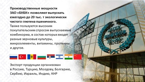 Эта корпорация – не просто крупнейший агрохолдинг, а современное высокотехнологичное предприятие XXI века, где применяют инновационные подходы и используют новейшие технологии. БНБК – это знаковый проект по глубокой переработке зерна с получением незаменимых аминокислот, комбикормов, премиксов (концентрированные смеси биологически активных веществ, предназначенные для обогащения кормов и повышения их питательной ценности), в которых нуждаются аграрии всего мира. А для белорусского агропромышленного комплекса это возможность закрепиться на внешних рынках. Экспорт продукции организован в Россию, Турцию, Молдову, Болгарию, Сербию, Израиль, Индию, КНР.