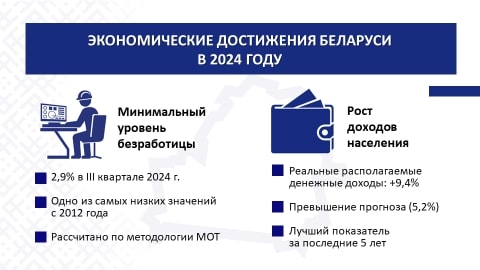 Безоговорочным аргументом в пользу этого тезиса является то, что белорусская экономика демонстрирует устойчивый рост и стабильность. Наблюдается прирост валового внутреннего продукта, под контролем находится инфляция, растут денежные доходы и накопления населения, безработица находится на минимальных значениях.