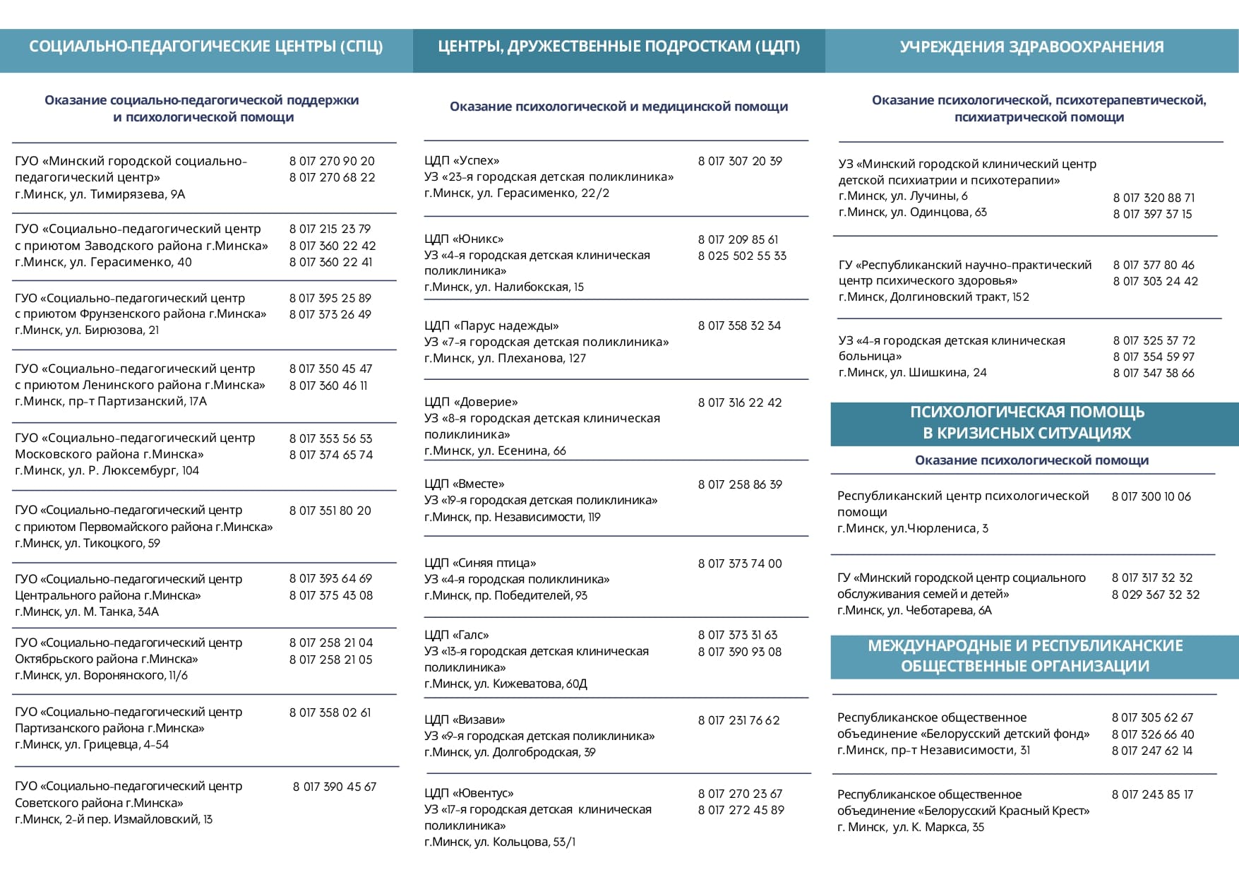 Региональная карта помощи (г.Минск) несовершеннолетним, пострадавшим от сексуального насилия и эксплуатации